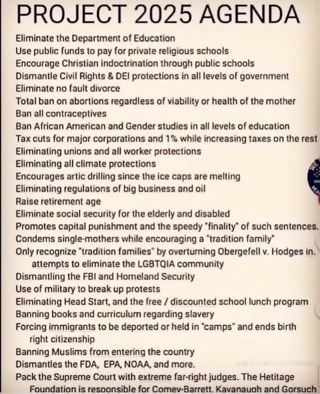 That’s the gist. We don’t condone violence, but WE DO NOT FUCKING STOP working to win this election. From President to school board, every office, every state, every conversation is important. WE MUST CONTINUE to let the country know about Project 2025. If you haven’t already, follow